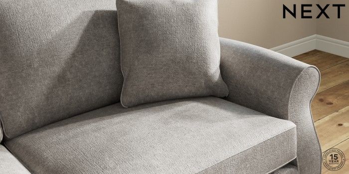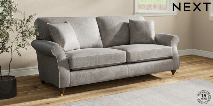 7.2.10 Ashford 3 Seater Sofa Plush Chenille Light Grey Modern Turned Metal Cap - Mid | Made Click here to use our website with more accessibility support, for example screen readers