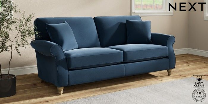 7.2.10 Ashford 3 Seater Sofa Plush Velvet Easy Clean Airforce Blue Low Turned - Light | Made Click here to use our website with more accessibility support, for example screen readers