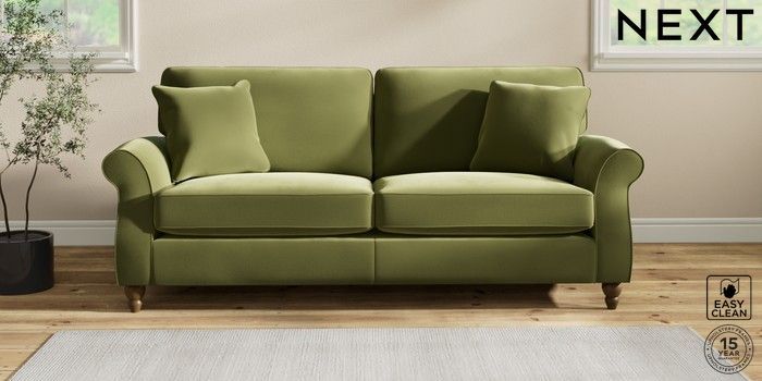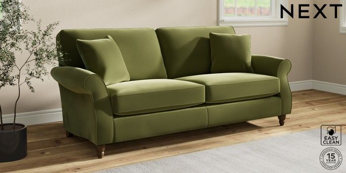 7.2.10 Ashford 3 Seater Sofa Plush Velvet Easy Clean Mid Olive Green Low Turned - Mid | Made Click here to use our website with more accessibility support, for example screen readers