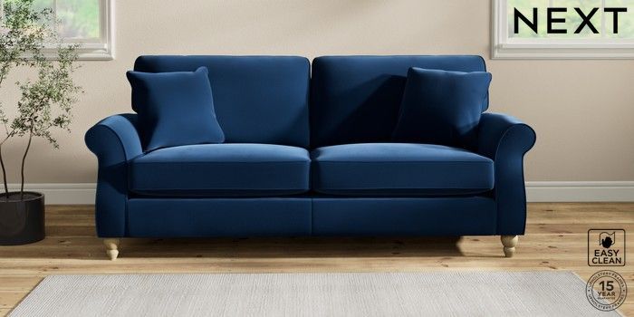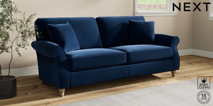 7.2.10 Ashford 3 Seater Sofa Plush Velvet Easy Clean Navy Blue Low Turned - Light | Made Click here to use our website with more accessibility support, for example screen readers
