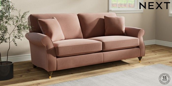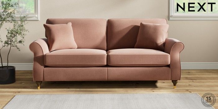 7.2.10 Ashford 3 Seater Sofa Relaxed Linen Look Light Rust Brown Modern Turned Metal Cap - Mid | Made Click here to use our website with more accessibility support, for example screen readers