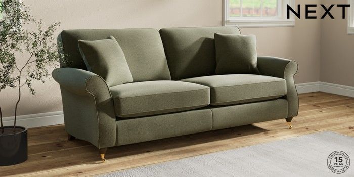 7.2.10 Ashford 3 Seater Sofa Ripple Chenille Mid Moss Green Castor - Mid | Made Click here to use our website with more accessibility support, for example screen readers