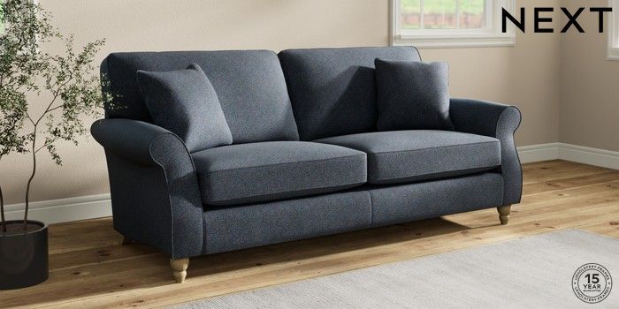 7.2.10 Ashford 3 Seater Sofa Tweedy Chenille Navy Blue Low Turned - Light | Made Click here to use our website with more accessibility support, for example screen readers