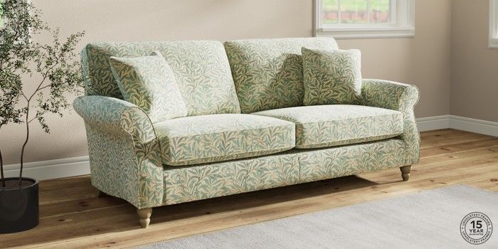 The Ashford sofa range embodies classic country style with its generous proportions and elegant scroll arms. It features "Firmer Sit" seat cushions, constructed with a high-density foam core and soft foam toppers. This design provides ultimate support, durability, and shape retention, while also offering a more tailored appearance. These cushions are low-maintenance and will naturally return to their shape when not in use. For extra comfort, we've included scatter cushions filled with a luxurious fibre mix. The seat cushions are also reversible, so we recommend rotating and plumping them regularly to keep them looking their best. Personalise your Ashford sofa by choosing from a vast array of fabric colors and a selection of feet options. This range has a sofa bed. Sofa beds are a practical and comfortable addition to any home, big or small. Our sofa beds are pull-out beds containing a separate 6cm occasional foam mattress. This pull-out mechanism is concealed underneath the main cushions. We have sofa beds across multiple ranges, but they all are 120cm in width and 180cm in length, so we suggest a double duvet and a double flat sheet to dress your sofa bed.