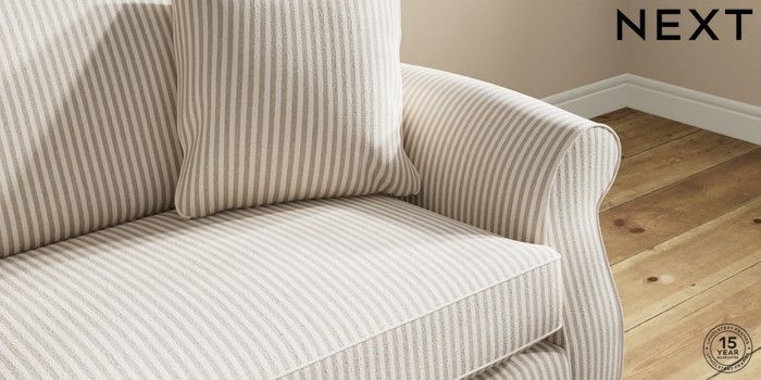 7.2.10 Ashford 4 Seater Sofa Chenille Stripe Natural Modern Turned Metal Cap - Mid | Made Click here to use our website with more accessibility support, for example screen readers
