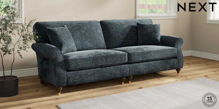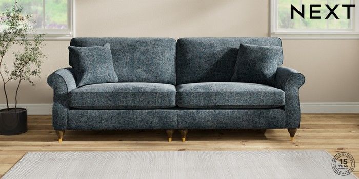 7.2.10 Ashford 4 Seater Sofa Chunky Chenille Dark Navy Blue Modern Turned Metal Cap - Mid | Made Click here to use our website with more accessibility support, for example screen readers
