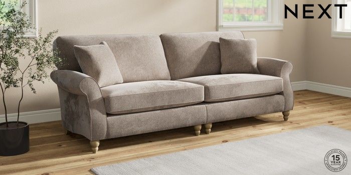 7.2.10 Ashford 4 Seater Sofa Chunky Chenille Light Dove Low Turned - Light | Made Click here to use our website with more accessibility support, for example screen readers