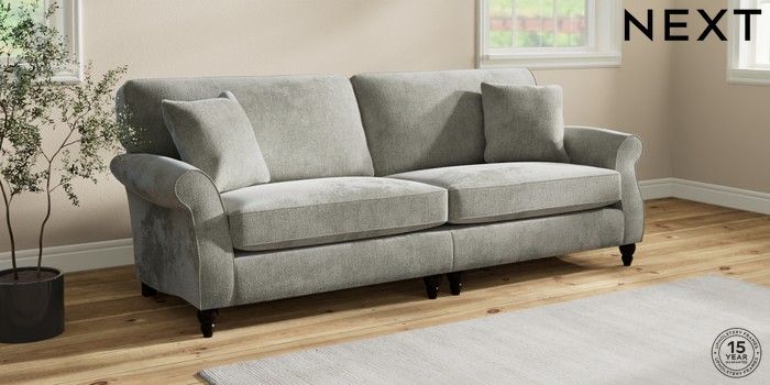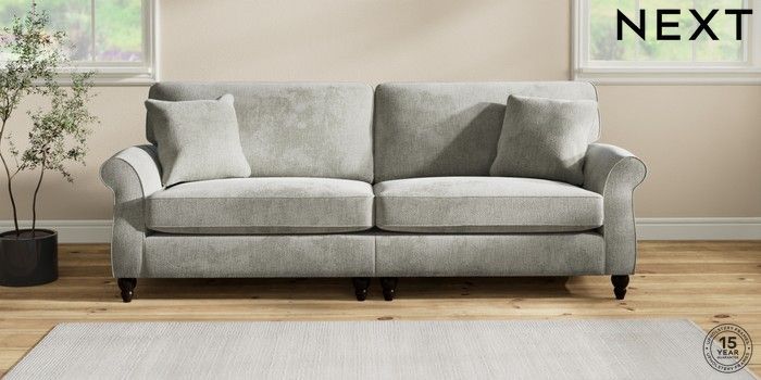7.2.10 Ashford 4 Seater Sofa Chunky Chenille Light Grey Low Turned - Dark | Made Click here to use our website with more accessibility support, for example screen readers