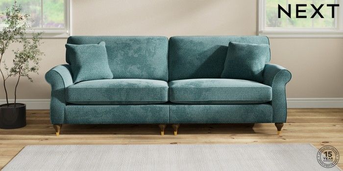 7.2.10 Ashford 4 Seater Sofa Chunky Chenille Mid Teal Green Modern Turned Metal Cap - Mid | Made Click here to use our website with more accessibility support, for example screen readers