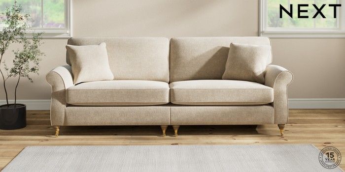 The Ashford sofa range embodies classic country style with its generous proportions and elegant scroll arms. It features "Firmer Sit" seat cushions, constructed with a high-density foam core and soft foam toppers. This design provides ultimate support, durability, and shape retention, while also offering a more tailored appearance. These cushions are low-maintenance and will naturally return to their shape when not in use. For extra comfort, we've included scatter cushions filled with a luxurious fibre mix. The seat cushions are also reversible, so we recommend rotating and plumping them regularly to keep them looking their best. Personalise your Ashford sofa by choosing from a vast array of fabric colors and a selection of feet options. This range has a sofa bed. Sofa beds are a practical and comfortable addition to any home, big or small. Our sofa beds are pull-out beds containing a separate 6cm occasional foam mattress. This pull-out mechanism is concealed underneath the main cushions. We have sofa beds across multiple ranges, but they all are 120cm in width and 180cm in length, so we suggest a double duvet and a double flat sheet to dress your sofa bed.