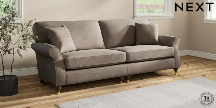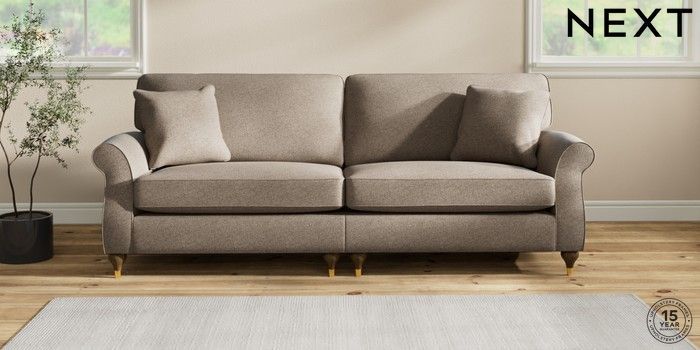 7.2.10 Ashford 4 Seater Sofa Chunky Weave Dark Natural Modern Turned Metal Cap - Mid | Made Click here to use our website with more accessibility support, for example screen readers