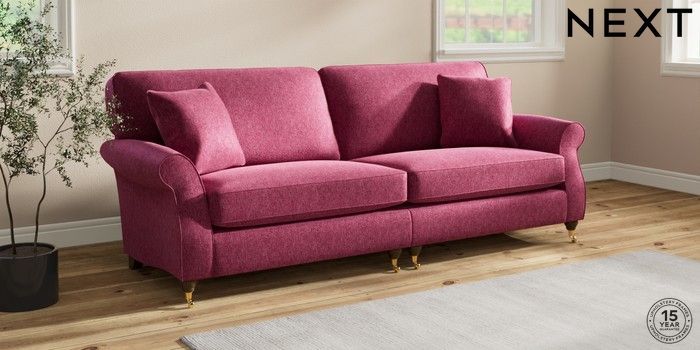 7.2.10 Ashford 4 Seater Sofa Cotswold Chenille Dark Raspberry Pink Castor - Mid | Made Click here to use our website with more accessibility support, for example screen readers