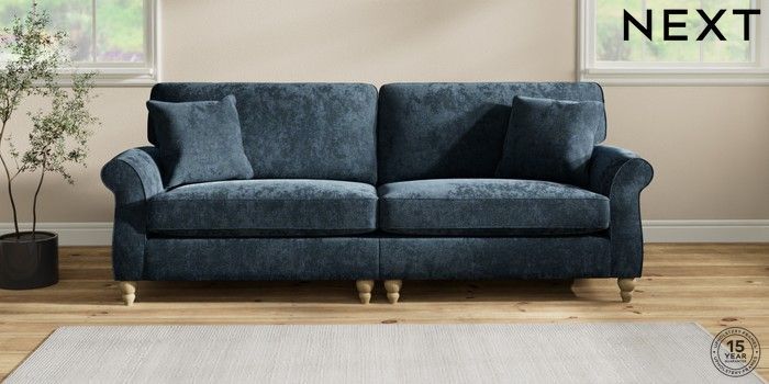 7.2.10 Ashford 4 Seater Sofa Distressed Velour Midnight Blue Low Turned - Light | Made Click here to use our website with more accessibility support, for example screen readers