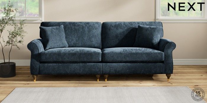 7.2.10 Ashford 4 Seater Sofa Distressed Velour Midnight Blue Modern Turned Metal Cap - Mid | Made Click here to use our website with more accessibility support, for example screen readers
