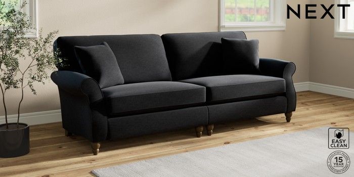 7.2.10 Ashford 4 Seater Sofa Fine Chenille Easy Clean Black Low Turned - Mid | Made Click here to use our website with more accessibility support, for example screen readers