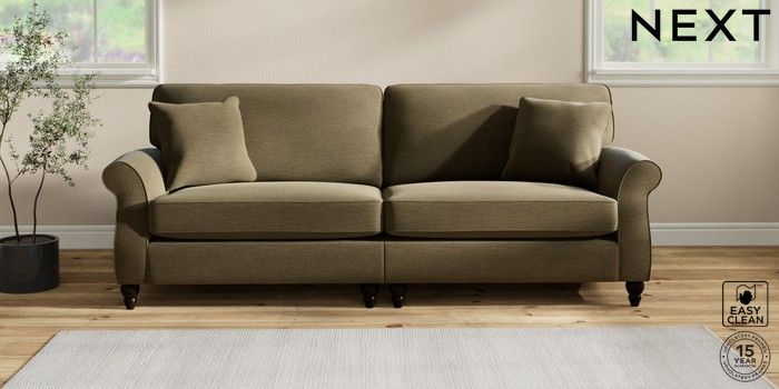 7.2.10 Ashford 4 Seater Sofa Fine Chenille Easy Clean Dark Moss Green Low Turned - Dark | Made Click here to use our website with more accessibility support, for example screen readers
