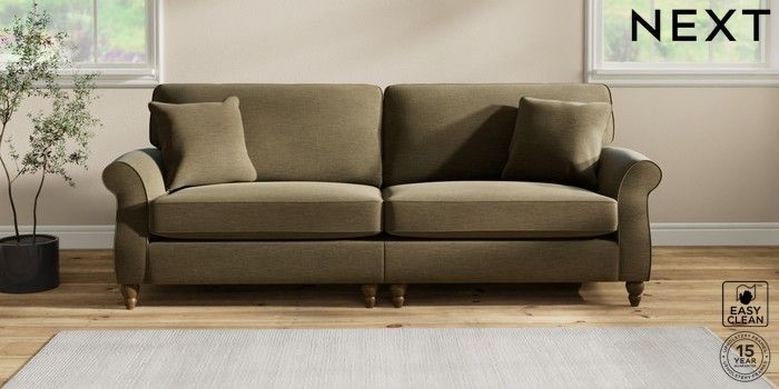 7.2.10 Ashford 4 Seater Sofa Fine Chenille Easy Clean Dark Moss Green Low Turned - Mid | Made Click here to use our website with more accessibility support, for example screen readers
