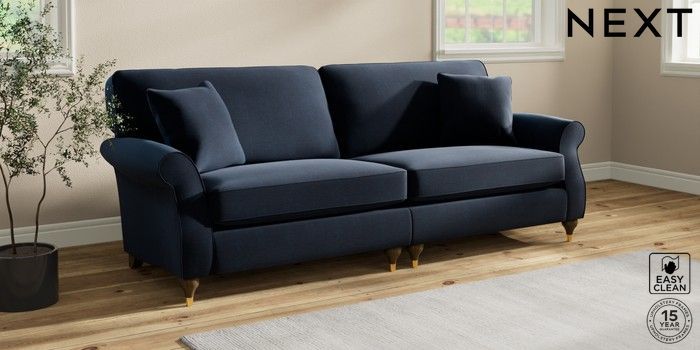 7.2.10 Ashford 4 Seater Sofa Fine Chenille Easy Clean Dark Navy Blue Modern Turned Metal Cap - Mid | Made Click here to use our website with more accessibility support, for example screen readers