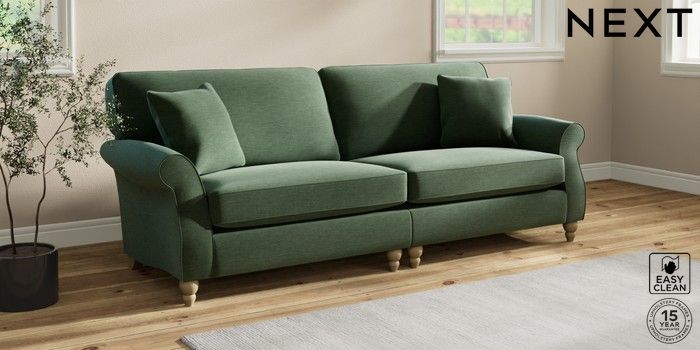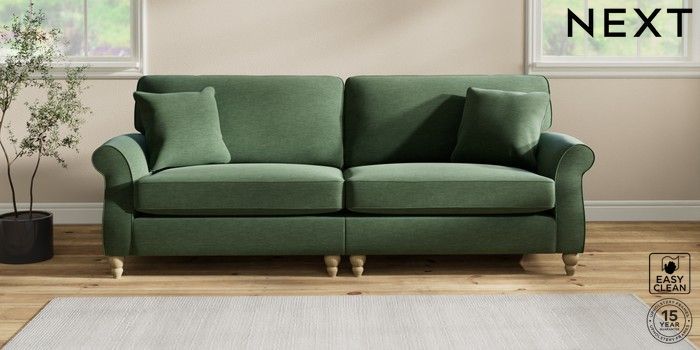7.2.10 Ashford 4 Seater Sofa Fine Chenille Easy Clean Mid Khaki Green Low Turned - Light | Made Click here to use our website with more accessibility support, for example screen readers
