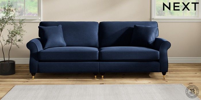 7.2.10 Ashford 4 Seater Sofa Luxe Chenille Navy Blue Castor - Dark | Made Click here to use our website with more accessibility support, for example screen readers