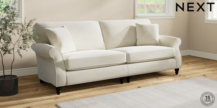 The Ashford sofa range embodies classic country style with its generous proportions and elegant scroll arms. It features "Firmer Sit" seat cushions, constructed with a high-density foam core and soft foam toppers. This design provides ultimate support, durability, and shape retention, while also offering a more tailored appearance. These cushions are low-maintenance and will naturally return to their shape when not in use. For extra comfort, we've included scatter cushions filled with a luxurious fibre mix. The seat cushions are also reversible, so we recommend rotating and plumping them regularly to keep them looking their best. Personalise your Ashford sofa by choosing from a vast array of fabric colors and a selection of feet options. This range has a sofa bed. Sofa beds are a practical and comfortable addition to any home, big or small. Our sofa beds are pull-out beds containing a separate 6cm occasional foam mattress. This pull-out mechanism is concealed underneath the main cushions. We have sofa beds across multiple ranges, but they all are 120cm in width and 180cm in length, so we suggest a double duvet and a double flat sheet to dress your sofa bed.