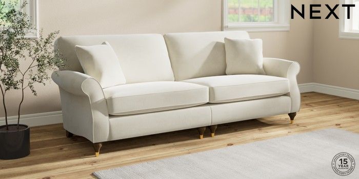 7.2.10 Ashford 4 Seater Sofa Luxe Chenille Oyster Modern Turned Metal Cap - Mid | Made Click here to use our website with more accessibility support, for example screen readers