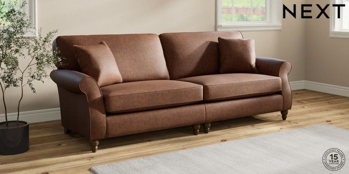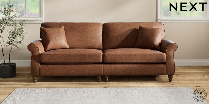 7.2.10 Ashford 4 Seater Sofa Monza Faux Leather Easy Clean Chestnut Brown Low Turned - Mid | Made Click here to use our website with more accessibility support, for example screen readers