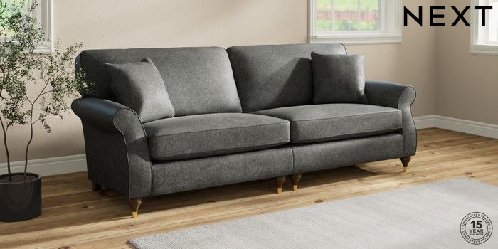 7.2.10 Ashford 4 Seater Sofa Plush Chenille Dark Grey Modern Turned Metal Cap - Mid | Made Click here to use our website with more accessibility support, for example screen readers