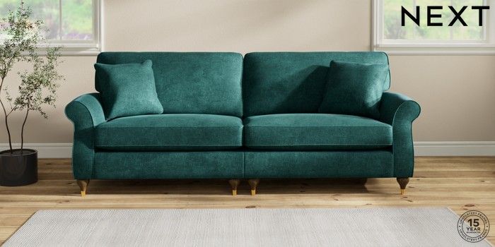 7.2.10 Ashford 4 Seater Sofa Plush Chenille Dark Teal Green Modern Turned Metal Cap - Mid | Made Click here to use our website with more accessibility support, for example screen readers