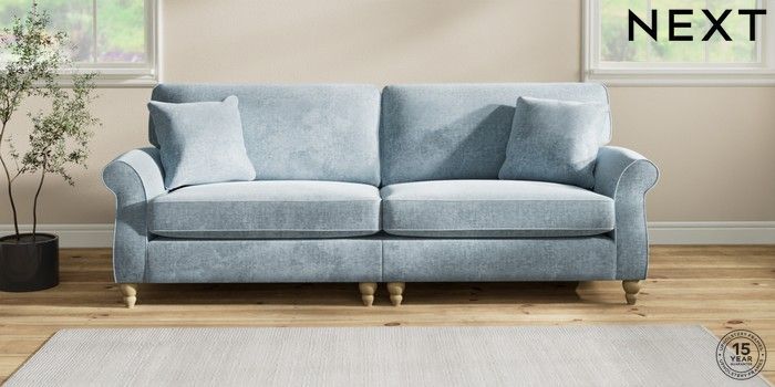 7.2.10 Ashford 4 Seater Sofa Plush Chenille Light Blue Low Turned - Light | Made Click here to use our website with more accessibility support, for example screen readers