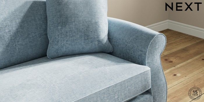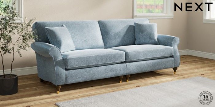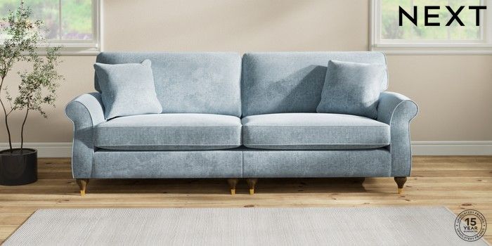 7.2.10 Ashford 4 Seater Sofa Plush Chenille Light Blue Modern Turned Metal Cap - Mid | Made Click here to use our website with more accessibility support, for example screen readers