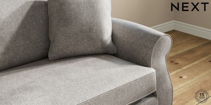 7.2.10 Ashford 4 Seater Sofa Plush Chenille Light Grey Modern Turned Metal Cap - Mid | Made Click here to use our website with more accessibility support, for example screen readers