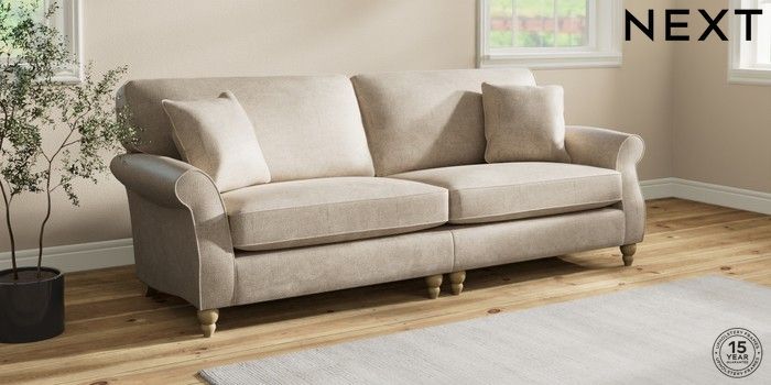 7.2.10 Ashford 4 Seater Sofa Plush Chenille Light Natural Low Turned - Light | Made Click here to use our website with more accessibility support, for example screen readers