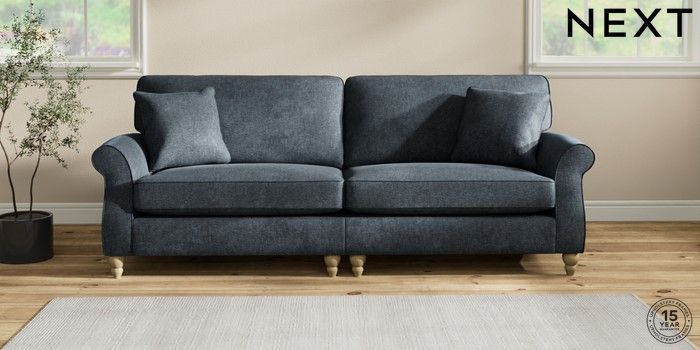 7.2.10 Ashford 4 Seater Sofa Plush Chenille Slate Blue Low Turned - Light | Made Click here to use our website with more accessibility support, for example screen readers
