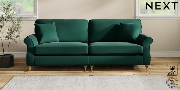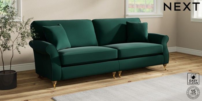 7.2.10 Ashford 4 Seater Sofa Plush Velvet Easy Clean Bottle Green Castor - Light | Made Click here to use our website with more accessibility support, for example screen readers