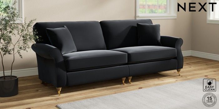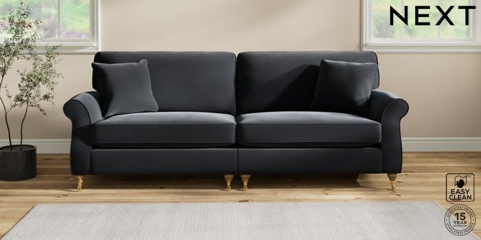 7.2.10 Ashford 4 Seater Sofa Plush Velvet Easy Clean Charcoal Grey Castor - Light | Made Click here to use our website with more accessibility support, for example screen readers