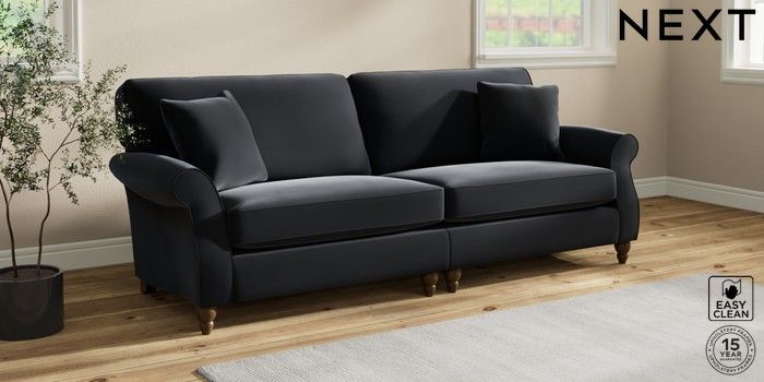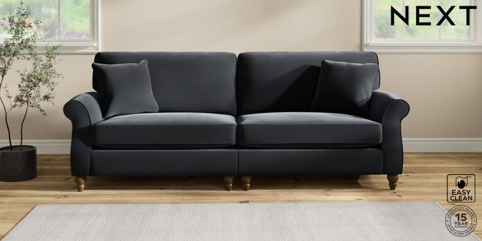 7.2.10 Ashford 4 Seater Sofa Plush Velvet Easy Clean Charcoal Grey Low Turned - Mid | Made Click here to use our website with more accessibility support, for example screen readers
