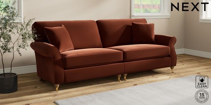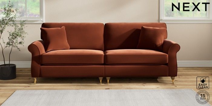 7.2.10 Ashford 4 Seater Sofa Plush Velvet Easy Clean Ginger Orange Castor - Light | Made Click here to use our website with more accessibility support, for example screen readers