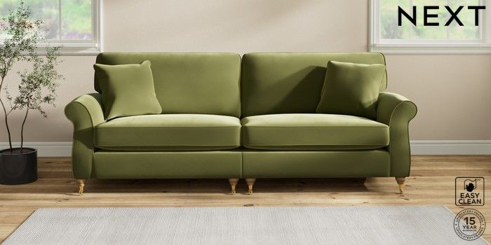 7.2.10 Ashford 4 Seater Sofa Plush Velvet Easy Clean Mid Olive Green Castor - Light | Made Click here to use our website with more accessibility support, for example screen readers