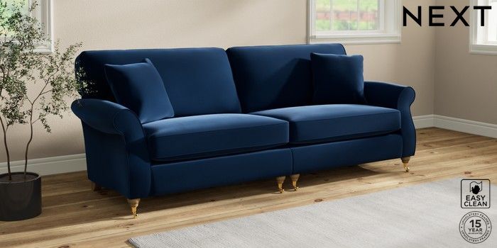 7.2.10 Ashford 4 Seater Sofa Plush Velvet Easy Clean Navy Blue Castor - Light | Made Click here to use our website with more accessibility support, for example screen readers