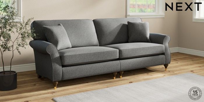 7.2.10 Ashford 4 Seater Sofa Tweedy Chenille Dark Grey Modern Turned Metal Cap - Mid | Made Click here to use our website with more accessibility support, for example screen readers