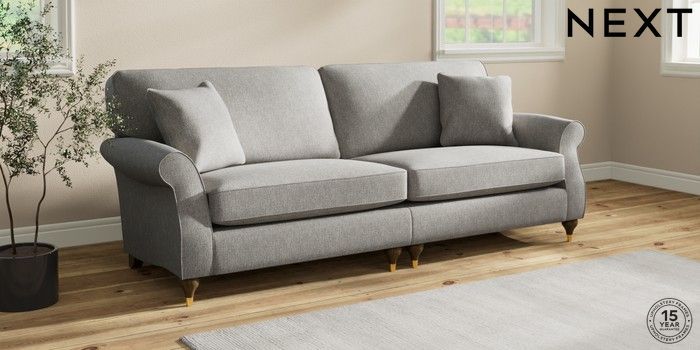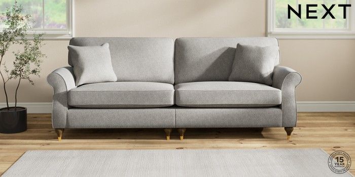 7.2.10 Ashford 4 Seater Sofa Tweedy Chenille Mid Grey Modern Turned Metal Cap - Mid | Made Click here to use our website with more accessibility support, for example screen readers