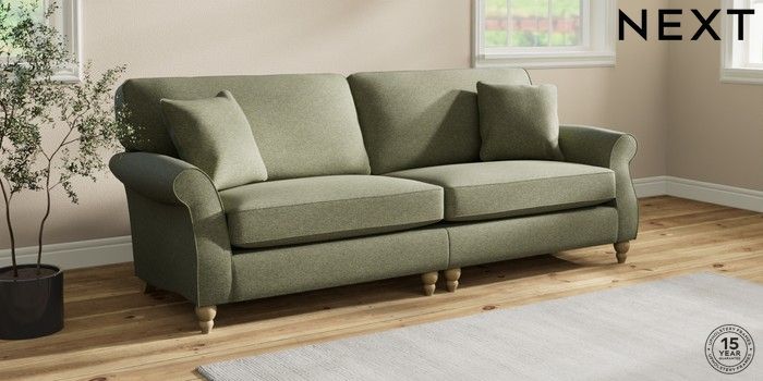 7.2.10 Ashford 4 Seater Sofa Tweedy Chenille Mid Moss Green Low Turned - Light | Made Click here to use our website with more accessibility support, for example screen readers