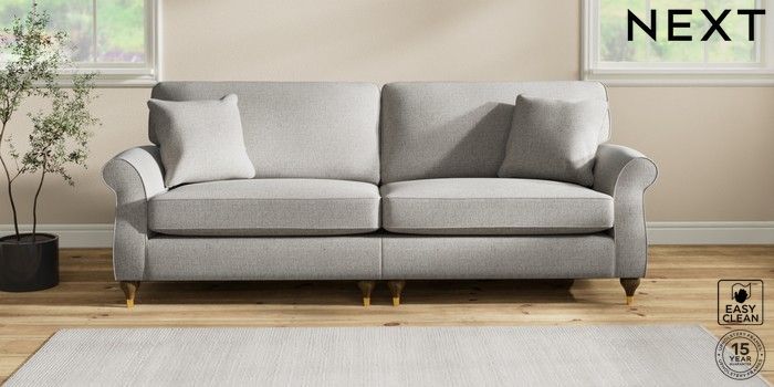 7.2.10 Ashford 4 Seater Sofa Woven Chenille Easy Clean Light Grey Modern Turned Metal Cap - Mid | Made Click here to use our website with more accessibility support, for example screen readers