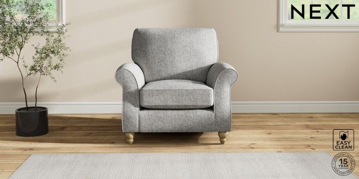 7.2.10 Ashford Armchair Chunky Boucle Easy Clean Light Grey Low Turned - Light | Made Click here to use our website with more accessibility support, for example screen readers