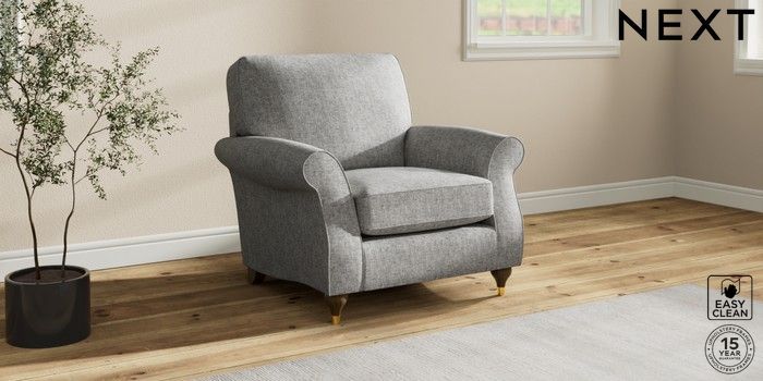 7.2.10 Ashford Armchair Chunky Boucle Easy Clean Light Grey Modern Turned Metal Cap - Mid | Made Click here to use our website with more accessibility support, for example screen readers