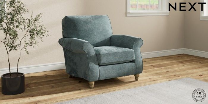 7.2.10 Ashford Armchair Chunky Chenille Light Teal Green Low Turned - Light | Made Click here to use our website with more accessibility support, for example screen readers