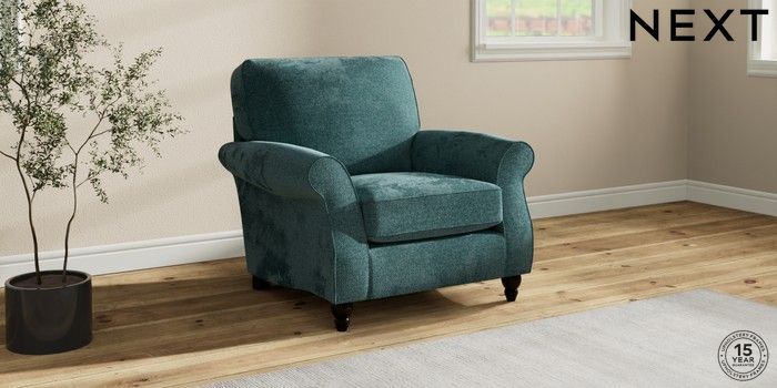 7.2.10 Ashford Armchair Chunky Chenille Mid Teal Green Low Turned - Dark | Made Click here to use our website with more accessibility support, for example screen readers