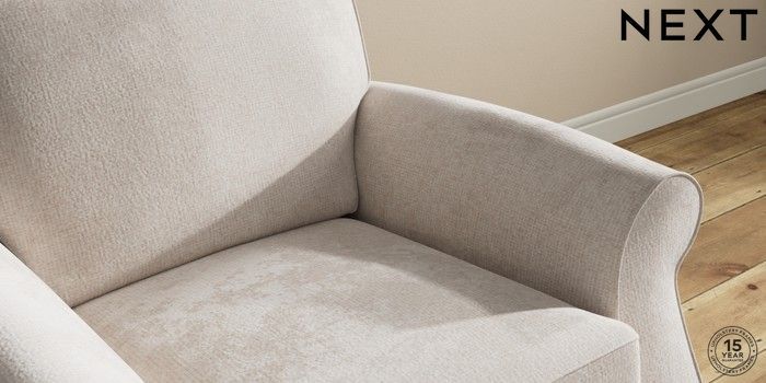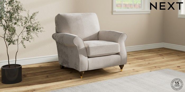 7.2.10 Ashford Armchair Chunky Chenille Oyster Modern Turned Metal Cap - Mid | Made Click here to use our website with more accessibility support, for example screen readers