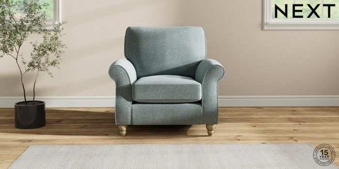 7.2.10 Ashford Armchair Chunky Marl Mid Blue Low Turned - Light | Made Click here to use our website with more accessibility support, for example screen readers